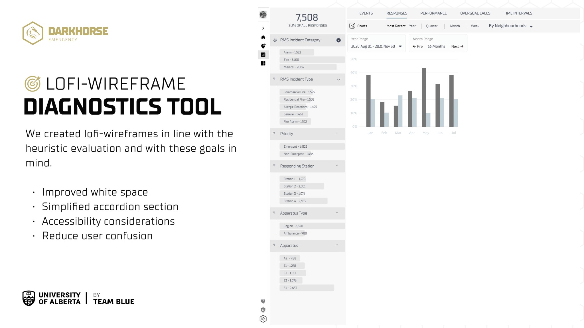 We hypothesized that improving colour contrast in the accordion and graphs, refining the selection feature, simplifying navigation, adding a tutorial, and including clear error messages would improve the Darkhorse emergency diagnostics tool’s accessibility and usability—reducing user confusion and frustration and enhancing the overall experience.